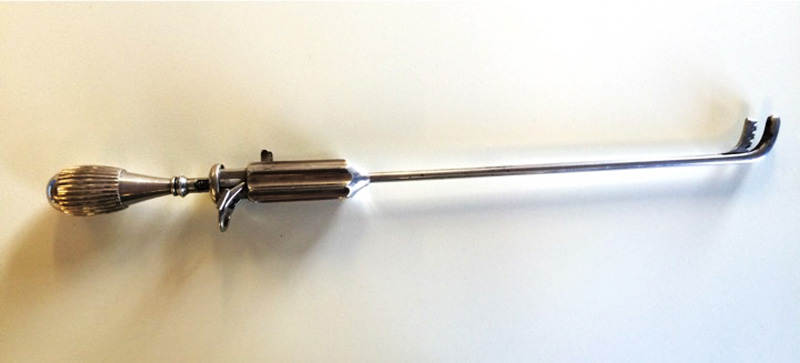 This type of blind lithotrite was invented in 1878 by Henry Bigelow, an American surgeon. It was bigger than previous blind lthotrites because, in 1872, FN Otis had demonstrated that the male urethra was much larger than previously thought, at 32Ch.