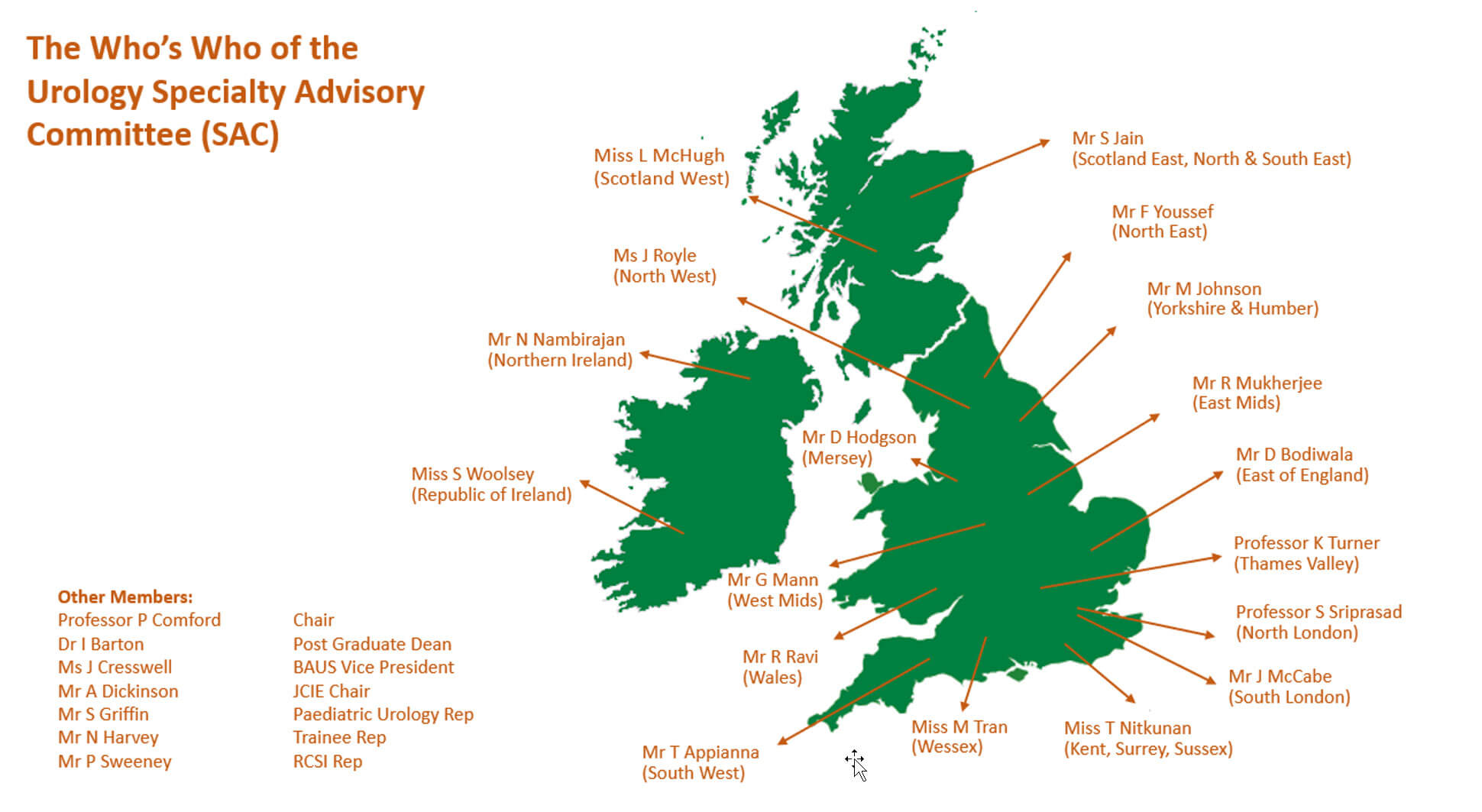 The Specialty Advisory Committee (SAC) in Urology is made up of urologists who collectively represent the surgical Royal Colleges and BAUS.