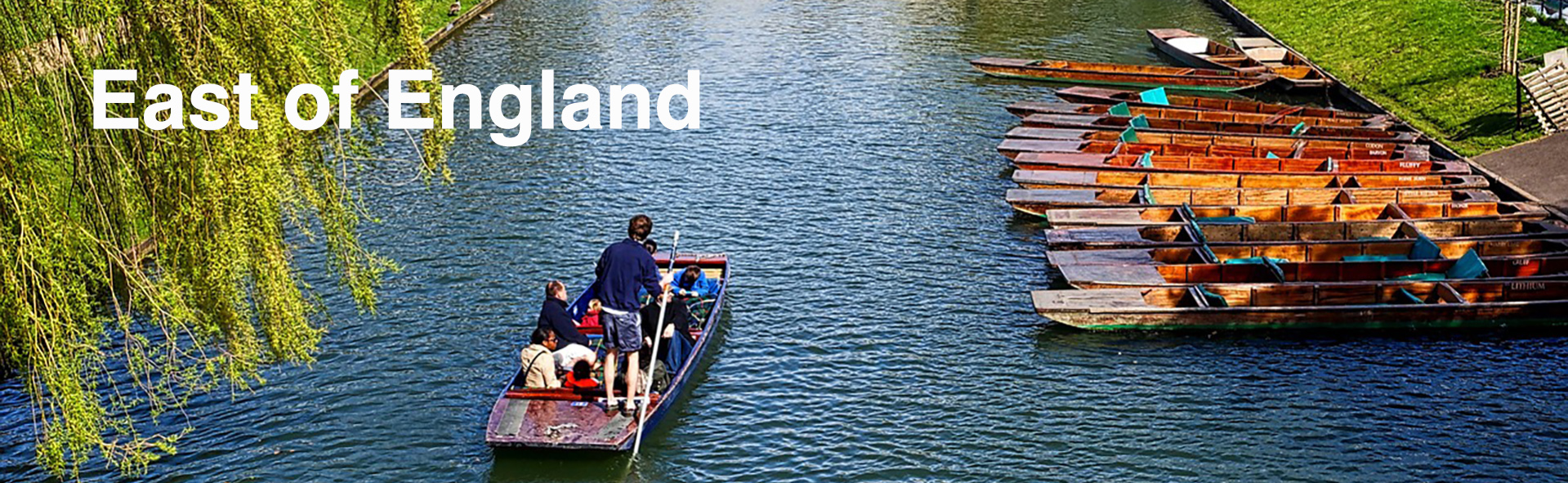 The region is largely flat although there are low, rolling hills in Norfolk & Suffolk. The Norfolk Broads form a network of waterways stretching from Norwich to the coast.