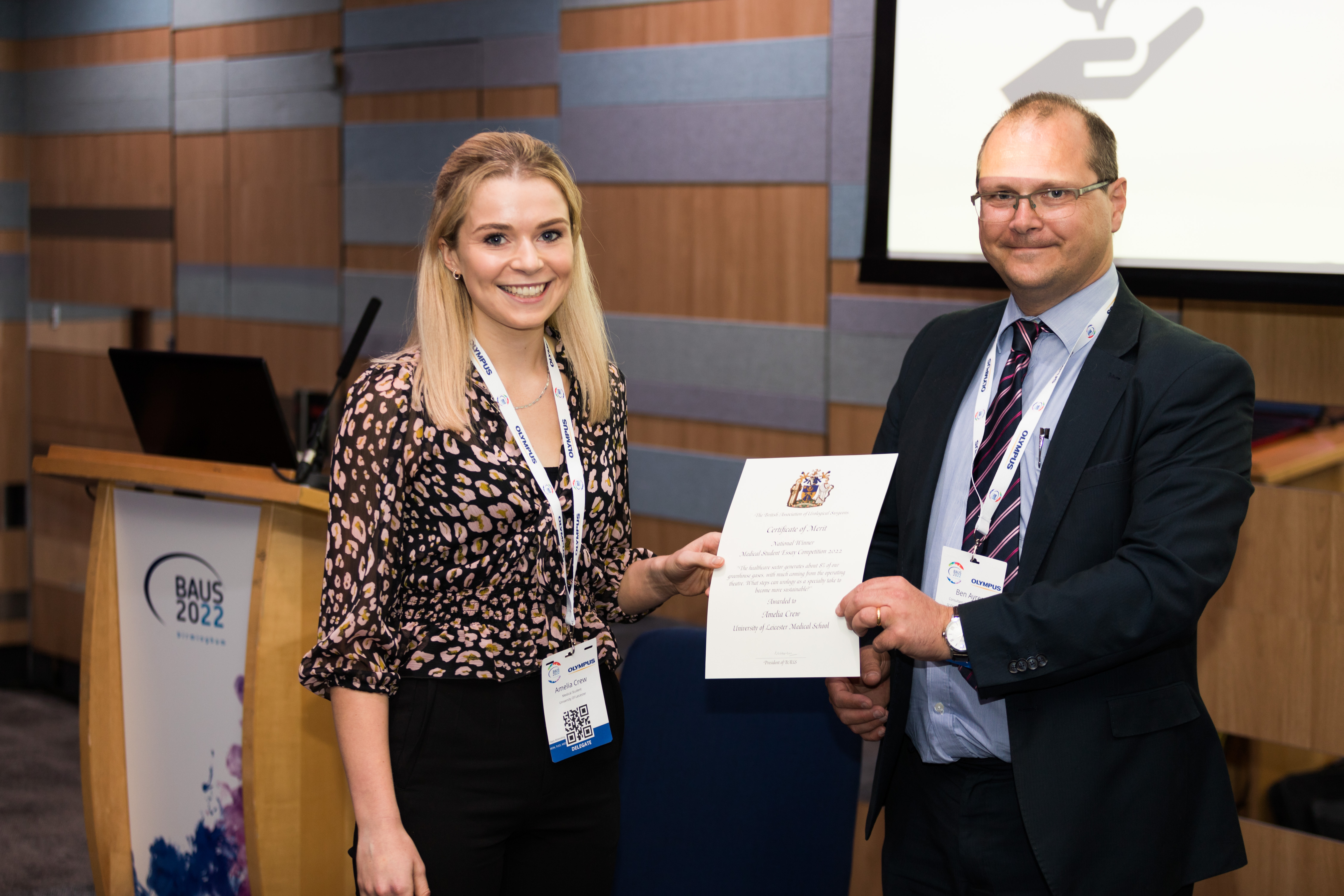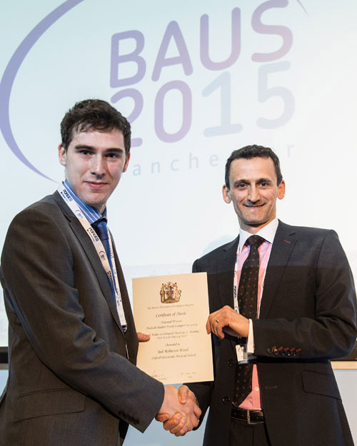 The prize for the winner of the national competition is £750 with £500 for the runner-up. The national winner and runner-up will be presented with their certificates at the BAUS Annual Scientific Meeting, and BAUS will give them guest registration for the conference.