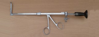 Old style right-angled choledochoscope used to retrieve stones during open renal surgery