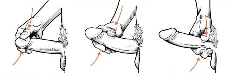 - the "squeeze" technique involves applying pressure to or squeezing your penis at one of the points shown in the image (below) just before orgasm, to delay ejaculation;